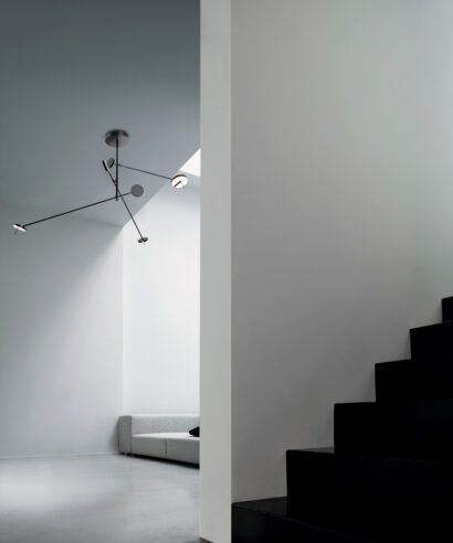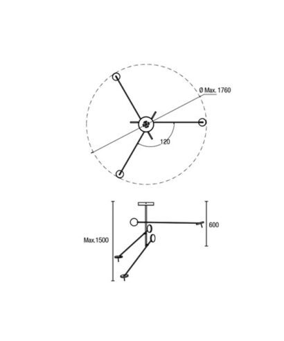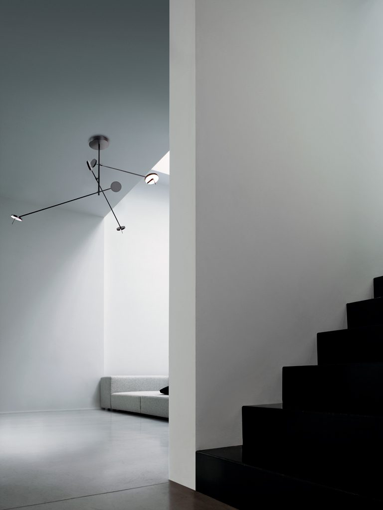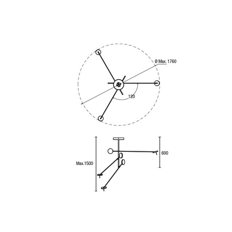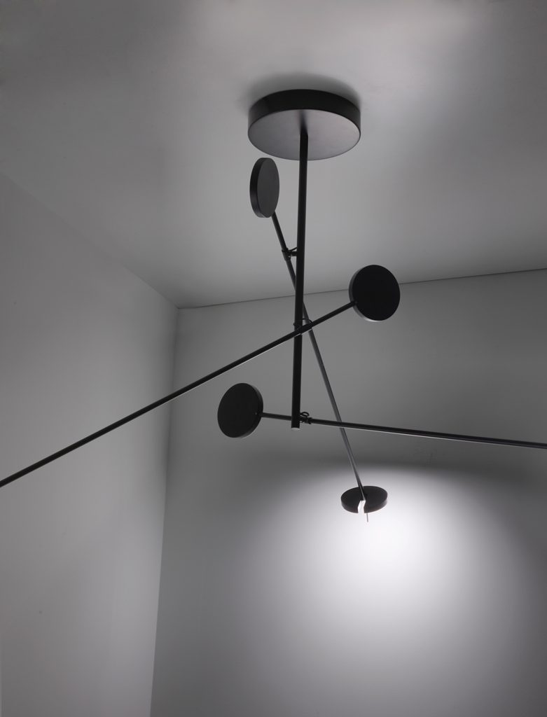 Aplique grande de techo de 3 cabezales orientables / barrales con contrapeso, basculante y movimiento lateral con cabezal orientable Estilo Minimal Moderno.